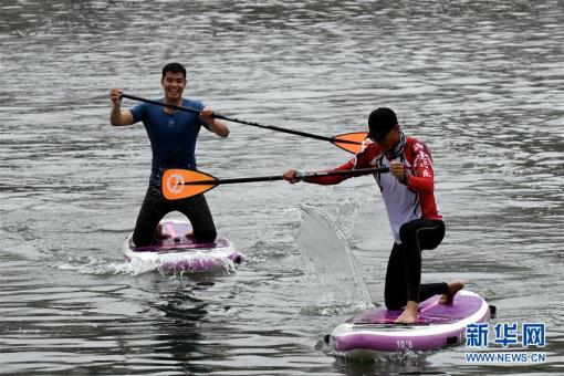 ↑11月16日,皮劃艇槳板競(jìng)渡選手在比賽中。 當(dāng)日,2018年福建將樂(lè)皮劃艇趣味賽在將樂(lè)縣金溪河開(kāi)賽。本次比賽設(shè)皮劃艇拔河、皮劃艇接力、槳板競(jìng)渡3個(gè)項(xiàng)目,吸引……
