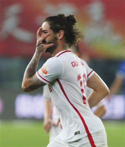 卡納瓦羅的布陣也極具挑釁性,442雙前鋒的陣型在國際足壇已非主流,很少有教練會(huì)選擇這種陣型,但卡帥沒有固守成規(guī),他將帕托和莫德斯特兩大前鋒一起頂在最前面,這一高一快的組合讓貴州防線顧此失彼,盯住了莫德斯特,漏掉了帕托;防住了帕托,卻看不住莫德斯特。權(quán)健首粒進(jìn)球便是如此,在帕托得球后,莫德斯特有意識地向左側(cè)扯動(dòng),帶走了貴州隊(duì)的一名防守球員,帕托在禁區(qū)弧前果斷起腳命中!
