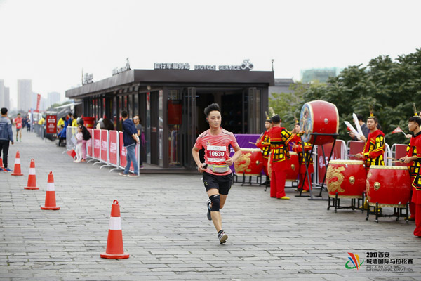 人民網(wǎng)北京9月11日電 2017西安城墻國際馬拉松賽于昨日上午8:00鳴槍開賽。作為世界唯一將賽道設置在完整城墻之上的馬拉松賽事,城墻馬自舉辦以來就備受廣大跑友的關注。今年亦是如此,來自美國、澳大利亞、法國、日本等13個國家和地區(qū)的3000名運動員齊聚古城墻,共同見證了這場歷史文化與體育競技相融合的跑步盛典。