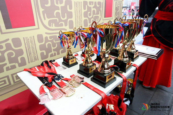 在今年賽事的主會場,靜態(tài)兵馬俑的展示及秦朝打扮的士兵讓跑友一進入甕城就能感受到濃郁的歷史氛圍。在城墻賽道的公里柱上,銅車、兵馬俑、甲胄、秦幣等大秦的標志性元素清晰可見,讓跑者始終置身于古代景致之中。賽道終點處還有穿著秦朝服飾的美女,為完賽跑者親手掛上獎牌,見證跑者的榮耀時刻。