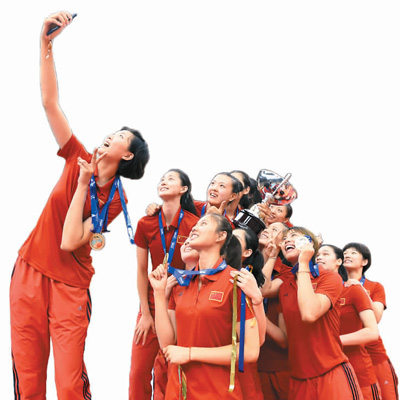 | 圖為中國女排球員與大冠軍杯獎杯合影。 |