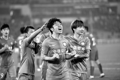 張稀哲打入點(diǎn)球后慶祝。 本報(bào)記者 和冠欣攝