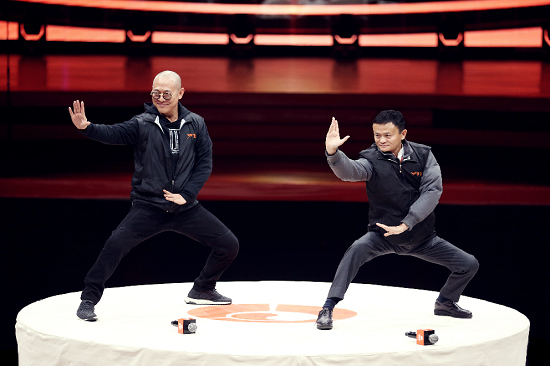 李連杰和馬云在現(xiàn)場演示功守道