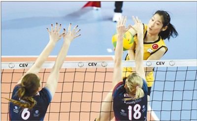當日,在土耳其伊斯坦布爾舉行的2018歐洲女子排球冠軍聯(lián)賽D組小組賽中,朱婷所在的土耳其瓦基弗銀行隊主場以3∶1戰(zhàn)勝波蘭羅茲建設(shè)隊。shy安康新聞網(wǎng)