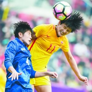 次戰(zhàn)面對泰國隊,中國隊很快就占據(jù)場面上的主動。第6分鐘王霜主罰右側(cè)角球,直接旋向近角導(dǎo)致皮球擊中近端立柱,將對方門將嚇出一身冷汗。第13分鐘王珊珊倒地掃射、第19分鐘王霜的遠(yuǎn)射都一次次考察著泰國隊門將波辛緊張的神經(jīng)。第20分鐘王霜接直塞球轉(zhuǎn)身抽射,波辛撲球后開球門球,卻直接開到中國隊禁區(qū)前沿,馬君解圍踢空,高速插上的坎加娜吊射命中,被動的泰國隊意外取得領(lǐng)先。好在中國隊沒讓對手得意太久,第30分鐘王霜搶點爭頂被破壞,皮球恰好落到王珊珊身前,她頭球沖頂將球送入空門,半場雙方1比1戰(zhàn)平。