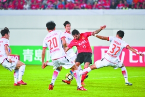 3月6日,在2018年亞冠聯(lián)賽G組第三輪比賽中,中超廣州恒大隊(duì)主場(chǎng)對(duì)陣韓國(guó)濟(jì)州聯(lián)隊(duì)。圖為廣州恒大隊(duì)球員高拉特(右二)在比賽中遭到對(duì)方球員防守! ⌒氯A社記者 劉大偉攝