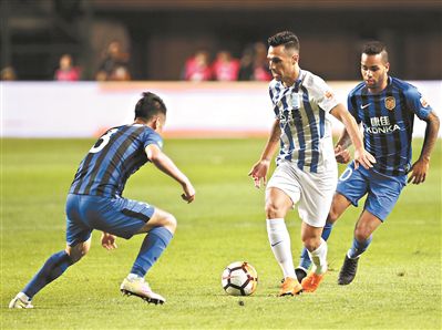 上半場比賽,江蘇蘇寧直接落入防守,廣州富力控制著比賽節(jié)奏,但得勢不得分。富力在前場的3個主要攻擊點,扎哈維、肖智和雷納迪尼奧,幾乎被對手完全隔離,3人之間難以打出配合,多數(shù)時候在密集防守下落入單打獨斗或孤立無援的局面。蘇寧主帥奧拉羅尤也在賽后表示,球隊在備戰(zhàn)時,以富力進攻端的核心球員為目標,有針對性地進行了防守訓(xùn)練。