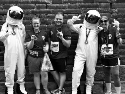 “今年改成抽簽,我們?nèi)揪臀乙粋(gè)中簽的,而且她給自己報(bào)名時(shí)也中簽了,當(dāng)時(shí)我就決定,完賽后向她求婚。我覺得這不僅是運(yùn)氣,是命中注定讓我在“城馬”的賽道上,記錄我們重要的時(shí)刻。”經(jīng)過片刻焦急的等待,閆梓奕終于等到完賽的女朋友,他忽然單膝下跪,并掏出鉆戒,向女朋友大聲喊出愛的宣言。一瞬間,周圍的跑友紛紛喊著“嫁給他”,來(lái)為依然緊張的閆梓奕打氣。最終,閆梓奕的女朋友接過花束、戴上鉆戒,開心地接受大家的掌聲,還有位跑者邊拍照邊說:“跑個(gè)馬拉松還被虐狗,太過分了! 王佳