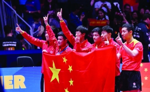 北京時間5月6日晚,2018年團(tuán)體世乒賽在瑞典哈爾姆斯塔德落下帷幕。在壓軸上演的男團(tuán)決賽中,由馬龍、樊振東和許昕出戰(zhàn)的中國男隊以3:0橫掃由波爾、菲魯斯和弗朗西斯卡出戰(zhàn)的德國隊,成就團(tuán)體世乒賽史上首次九連冠。此前中國女乒曾經(jīng)兩次在沖擊九連冠時功虧一簣,這一次魔咒終于被中國男乒打破。
