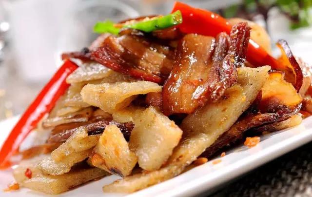 洋芋粑粑炒臘肉原是鎮(zhèn)坪老百姓桌上的家常小菜。是用洋芋制品和鎮(zhèn)坪特色臘肉合成的一道菜肴。新鮮的洋芋粑粑,配以鮮紅的五花臘肉,洋芋粑粑充分吸收了臘肉的油脂,顯的越發(fā)的飽滿晶瑩。再加入新鮮的本地辣椒,花椒,蒜片,蔥節(jié),姜片。用農(nóng)村燒柴禾的大鐵鍋煎炒,誘人的醇香散發(fā)著濃濃鄉(xiāng)情,紅黃白綠色澤鮮亮,臘肉肥而不膩,洋芋粑粑滑潤爽口。