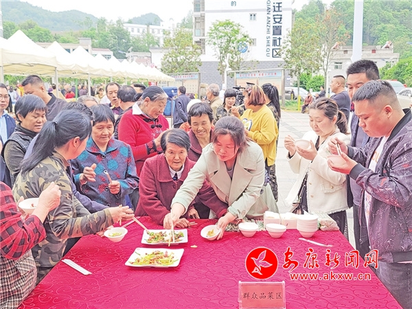 比賽中還設(shè)置了群眾品鑒環(huán)節(jié),60多道精心制作的美味佳肴讓參與群眾一飽口福。紅升社區(qū)居民汪德玉說:“我們縣河是個山清水秀的好地方,舉辦美食大賽這是第一次,能吸引各個地方的游客來品嘗我們縣河的味道,特別是辣子雞,做得很好。”
