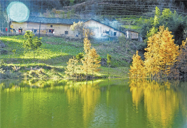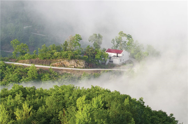 在水中,一條油潤潤的小路,融匯了大地的物語,春雨的澆注,還有輕輕觸碰就會變幻的神秘。道路的兩邊,是造型夸張要滴出翠來的植物,阻擋了行人的腳步,牽絆了路人的衣服,會給那些衣服沾染上艷麗的花粉,在深夜里都會散發(fā)出一股醉人的清氣,仿佛有什么該想而未想,心里蘊滿了不能為人道皎潔的白月光。沿著那條路,就是在水中宛若樓臺亭閣一般的房屋,黑瓦房、白墻壁,杏花、桃花、茉莉花爭相簇擁,房子便如置身其中的嬰兒了。還有小奶狗在屋前悠閑地打盹,太陽直射下來,貓也走來湊湊熱鬧,貓的眼睛碧藍澄澈,仿佛天使之瞳,總是帶著先知或者驚異審視的表情……而與此相對的,就是炊煙了,唯有炊煙將我們拉回世俗庸常之中,飯菜的香氣,去年果木熏的臘肉,農家自己釀的一碗包谷燒,啊,真想喝點小酒,酒的美妙不在于入口的辛辣,而在于微醺之時,那種難以控制的快樂!古來圣賢皆寂寞,唯有飲者留其名,明天的事,明天再說吧!