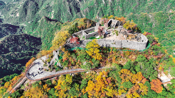 全勝寨位于我市嵐皋縣民主鎮(zhèn),是一個(gè)隱于群山、建于絕壁之上、保存完整的古山寨群落。古寨遺存的多處石砌城墻和戰(zhàn)壕錯(cuò)落有致,延綿數(shù)公里,為秦巴山區(qū)所罕見。據(jù)當(dāng)?shù)厥分居涊d,此寨始建于明末,是當(dāng)?shù)孛癖姙槎惚軕?zhàn)亂而建。因山寨抵御多次外來侵?jǐn)_,屢獲全勝,故名“全勝寨”。這里平均海拔1300至1500米,是陜西省第七批文物保護(hù)單位,也是目前我省保存較為完好、歷史戰(zhàn)績(jī)輝煌的寨堡,同時(shí)也是重要的革命歷史舊址。對(duì)于研究明、清、民國(guó)時(shí)期嵐皋歷史文化和寨堡建筑具有重要價(jià)值。(袁法 攝)