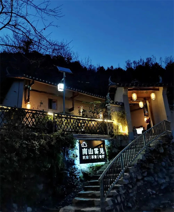 南山云見(jiàn)民宿共有11個(gè)陜南民居,集茶舍、住宿、餐廳、書院、美術(shù)館為一體,穿梭于鳳凰山中的康養(yǎng)文化健身步道,宛如一條絲線,串聯(lián)了大南溝的龍?zhí)、龍隱谷、凈春山、講經(jīng)臺(tái)、逍遙石、明月寺、南山云見(jiàn)民宿等景點(diǎn)。