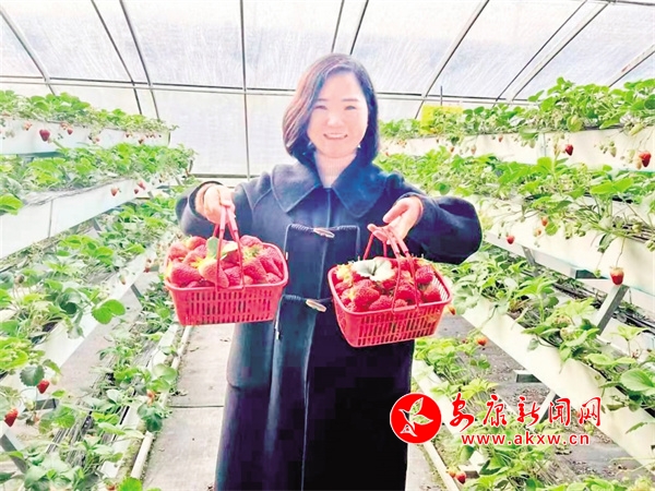 走進大棚,草莓特有的清香味撲鼻而來,新型的鋼架種植平臺一線排開、高低錯落,一壟壟長勢茂盛的草莓秧苗嫩綠清新,一顆顆飽滿透紅的草莓點綴于綠葉之間,幾名游客正在仔細地采摘著成熟的果實。“這草莓聞起香,吃起來甜!在這采摘草莓還不用彎腰,不費勁。”游客高女士說。