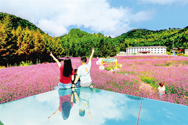 中秋節(jié)期間,平利千家坪森林公園天書峽馬鞭草花競(jìng)相怒放。如畫的景色吸引眾多游客前來(lái)賞景打卡。(詹永桂 攝)7NW安康新聞網(wǎng)