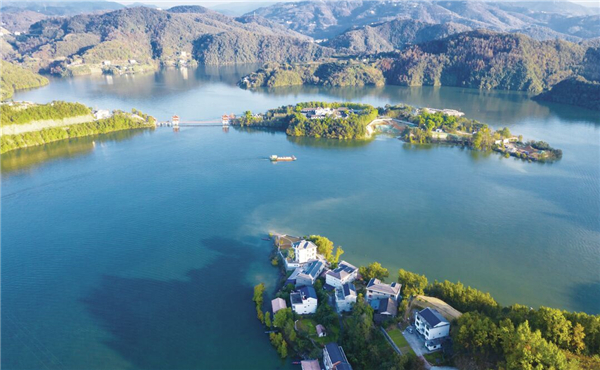 □ 唐玉林瀛湖是一幅畫,有島有水,有橋有船,有湖有亭。有石有樹。天是藍(lán)的,水是綠的,山是青的,小島匍匐水上,像琵琶,像樹葉,像一個(gè)調(diào)皮可愛憨態(tài)十足的嬰孩……