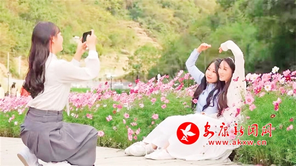 相映成趣游人如織金秋時節(jié),在白河縣構(gòu)朳鎮(zhèn)廟山寨花海產(chǎn)業(yè)園,盛開的格桑花在風中搖曳。游客漫步在路上,心緒隨著搖曳的格;ㄒ煌鸱两谇锶盏膶庫o與美好……