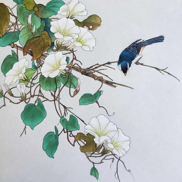在墨介藝術(shù)領域,林晶沉醉于工筆的花鳥畫,執(zhí)著追求而不知疲倦,奮斗自己繪畫夢想。品讀女畫家林晶的工筆花鳥畫作,是一種心靈的感悟。他的畫既吸收了古人嚴謹工細的用筆,又結(jié)合現(xiàn)代的隱線勾勒與層層暈染,體現(xiàn)出一種古雅清秀的印跡。