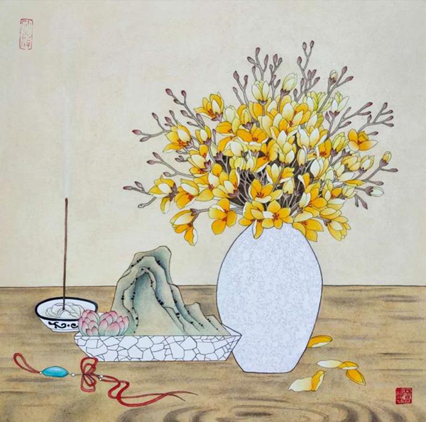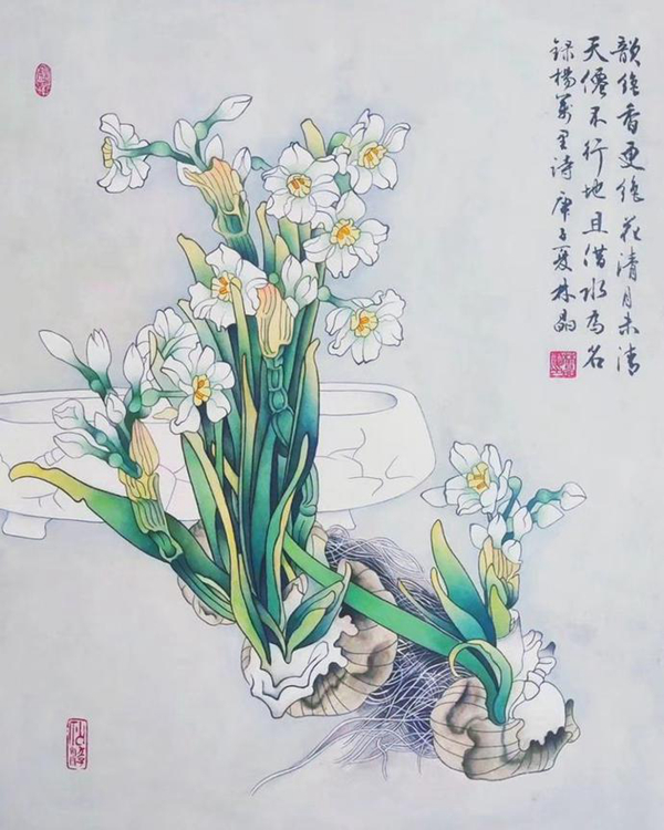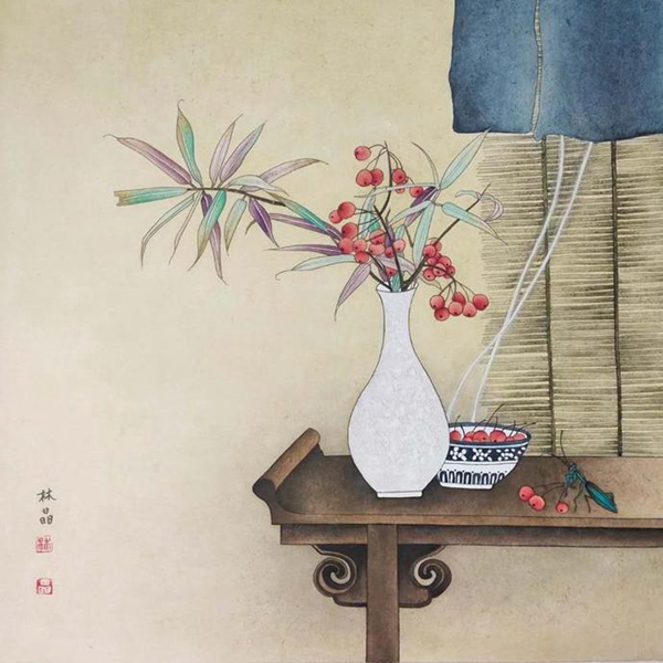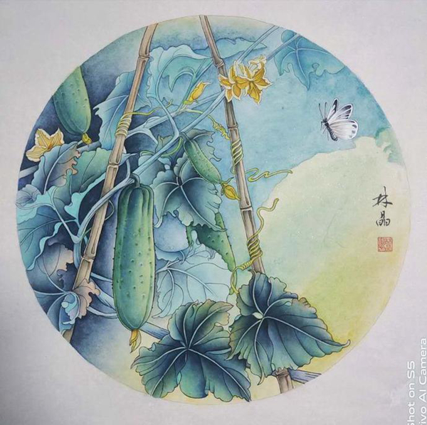 簡而言之,林晶女畫家的工筆花鳥畫,無論在構(gòu)圖上、線條上、設色上都彰顯出自己的“功夫”。她的每一幅畫,都那樣艷而不俗、淡而有味,讓人有百看不厭的舒暢感。