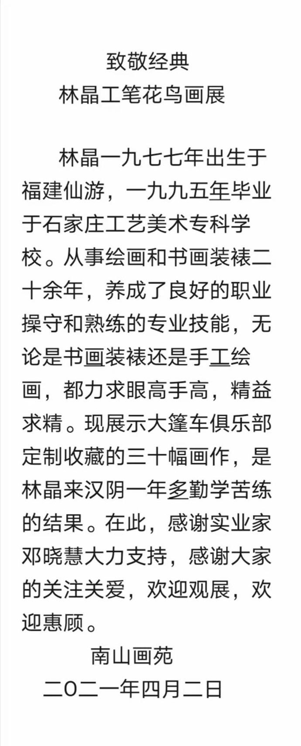 在藝術(shù)追求上,林晶遵循陳之佛“律己教人”的金科玉律,即“觀、寫、摹、讀”四字訣。因而陳之佛在中國工筆花鳥畫的領域里創(chuàng)造了奇跡,贏得了"南陳北于"的美譽。所以林晶對《陳之佛畫集》的繪畫風格情有獨鐘;將他藝術(shù)的“金科玉律”,當成了自己繪畫的座右銘。