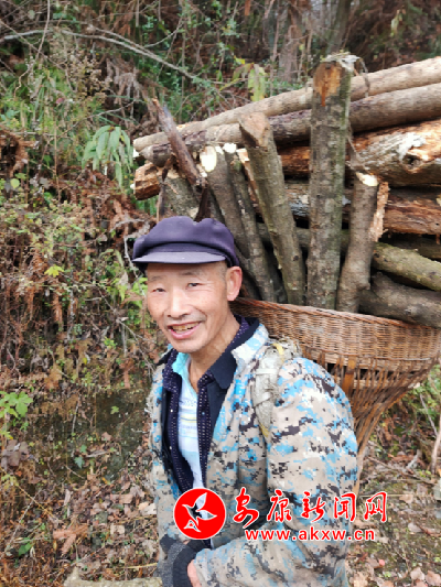 途中,偶遇一砍柴老農(nóng),身著迷彩雨衣,手腳麻利的將倒地樹木,砍成2尺多長(zhǎng)的木段。見來人,憨憨一笑,算是大個(gè)招呼。聊了一會(huì)天,得知眼前這位面色紅潤(rùn)、硬朗的老人,年逾七十。