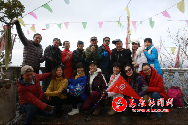 車輪嘎止在藺河鎮(zhèn)蔣家關(guān)村,徒步2小時(shí)就到了山頂。路上,看見雪的“不速來客”,興奮異常,女驢友五顏六色,黃鸝婉聲,剎那撕碎了荒野的沉寂,男驢友長(zhǎng)槍短炮,咔擦記錄著久違的驚奇……平坦的山脊,突兀一座孤峰,高若數(shù)丈,菱角如線,層次分明,絕壁如刀砍斧劈般,無(wú)路,懸空木梯,幾乎呈直角狀,弓腰獨(dú)身才能爬上去,這個(gè)地方叫香爐寺。凌空飛石,古木蒼天,的確神似幾分梵凈山。
