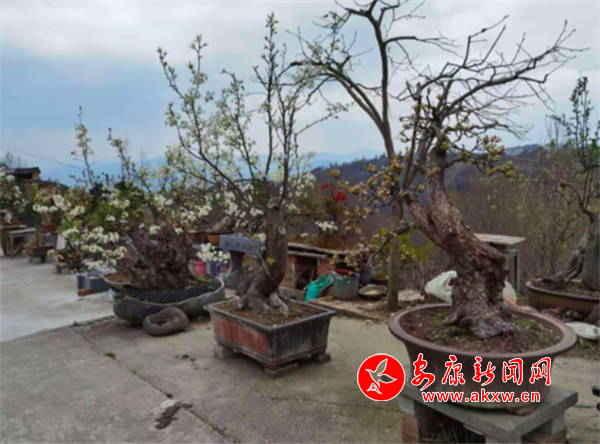 正房的后面有三、四層用磚頭瓦塊砌成的臺(tái)階,每層寬約一米,擺放的也是各類盆景、花卉、備用的樹根、嫁接的苗木、花盆等。早春時(shí)節(jié),其中兩盆蠟梅頗為別致,色澤鮮艷,含苞待放。