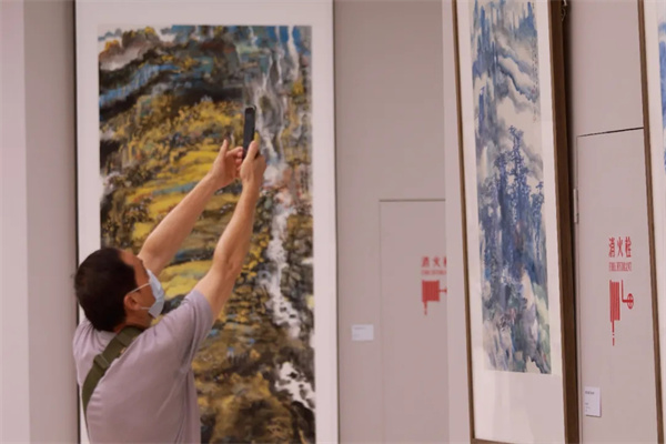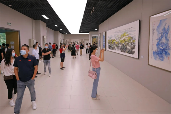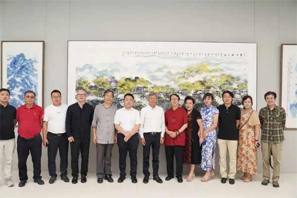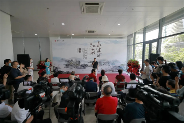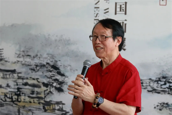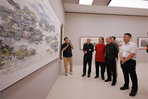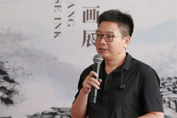 于洋在致辭中表示,“王福元先生的作品之所以被觀者所認同,被畫壇所稱道,正是源于他對藝術的執(zhí)著態(tài)度,及其作品顯現(xiàn)出的鮮明藝術特色和濃郁的個人風格。其作品的個人特色主要體現(xiàn)在三個方面:其一,王福元先生長于色彩,并獨創(chuàng)‘幻彩’畫法。他不囿于傳統(tǒng)山水畫色彩的固有程式,其作品色彩鮮活、生動清透,筆下的江南山水玲瓏剔透、氤氳朦朧,同時色彩絢爛,極具觀賞性,作品色彩張力和視覺沖擊力強;其二,王福元先生的山水畫具有綜合跨界性,借鑒了繪畫領域外其他藝術門類的風格。王福元先生長于音律,能演奏笛、蕭等樂器,因此他的山水畫有以音律入畫、注重意蘊表達的特點,具有很強的節(jié)奏感和律動感。其三,他的山水畫具有很強的筆墨、色彩、圖式的個人特點。與北方山水不同,江南山水因其獨特的地域性,具有一派平遠的景象。他把個人思考和表現(xiàn)風格化育在清透的江南文人水鄉(xiāng)氣象之中,在承續(xù)傳統(tǒng)文脈的同時也顯現(xiàn)了地域文化性格,這是十分可貴的。正因為這三個方面的特點,我覺得王福元先生筆下的江南山水既是南派山水畫自古以來變遷中的一種發(fā)展,也是他通過自身的綜合思考和知行合一的積淀所衍生出來的個人風格。”。