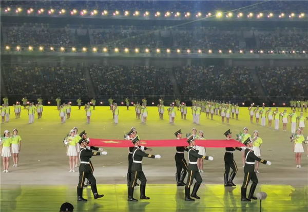 隨后,五星紅旗冉冉升起,6萬人齊聲唱國歌。“起來,不愿做奴隸的人們,把我們的血肉,筑成我們新的長城……”當(dāng)這首從小根植在我們腦海中的歌曲在奧體中心上空飄揚(yáng),場面十分壯觀,這一刻我不禁熱淚盈眶!第一次參加如此壯觀的升旗儀式,第一次近距離參加如此龐大的體育盛會(huì),內(nèi)心頃刻間升騰起無比強(qiáng)大的民族自豪感,真切感受到祖國的繁榮強(qiáng)大、團(tuán)結(jié)富強(qiáng),越發(fā)覺得我們能夠生在長在偉大的中國,是多么自豪、多么驕傲!能夠生活在這個(gè)繁榮昌盛的時(shí)代,是多么幸運(yùn)、多么幸福!