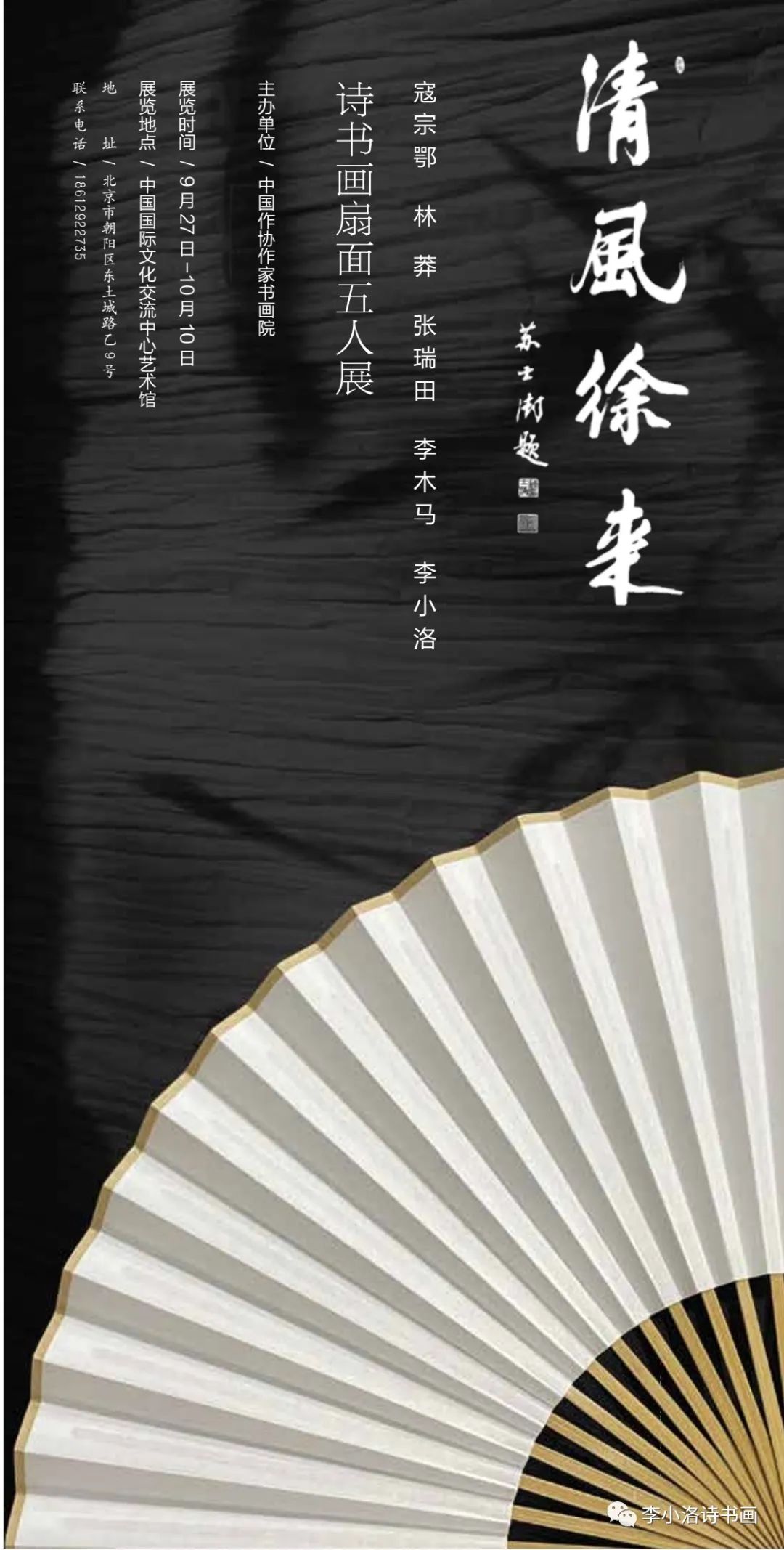 詩是有聲畫,畫是無言詩。墨花著紙,詩中有畫,畫中有詩,是古往今來無數(shù)文人墨客追尋的境界和理想。中國扇文化源遠流長,扇面書畫,是更具中國文人傳統(tǒng)與詩性意味的交流方式。本次“清風(fēng)徐來——詩書畫扇面五人展”,屬中國作家詩人詩書畫扇面小品首次集約亮相。