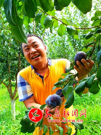 “黑牛”名叫劉春波,是安康市黑牛富硒種植業(yè)有限公司老板。“你種的果子像你的公司名一樣又大又壯!”面對大家詼諧的夸贊,“黑牛”自豪地笑著說,“農(nóng)業(yè)是個良心活兒,咱園區(qū)用的全是農(nóng)家肥,所以長得大,你看咱家的黑布林長的比梨子都大,一個六兩,一個抵仨!”