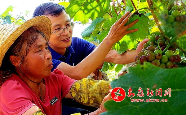 正午時分,在漢濱區(qū)五里鎮(zhèn)劉營村一組,一波人正在“黑牛”上躥下跳地帶領(lǐng)下,揮汗如雨踏草穿林,來到葡萄樹旁、甜桿兒林里、瓜前李下,拍照片、尋問題,完全不顧氣溫已達到“白熱化”階段。