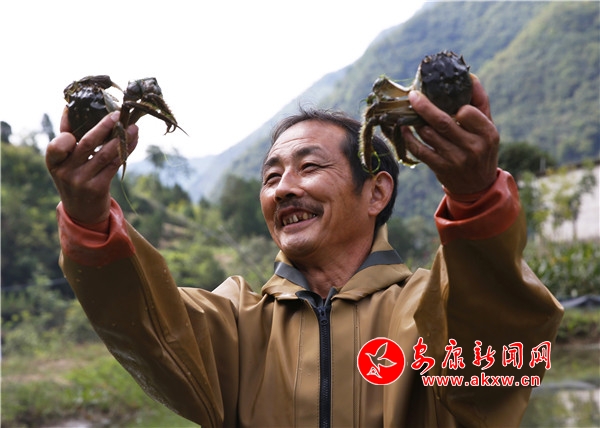 金秋時(shí)節(jié),秦巴處處穰穰滿家。進(jìn)入漢濱區(qū)茨溝鎮(zhèn)營(yíng)盤埡村水產(chǎn)養(yǎng)殖基地,蟹農(nóng)游石平正忙著下地籠挑選螃蟹,送往安康、西安等市場(chǎng)銷售。2018年,游石平在營(yíng)盤埡村流轉(zhuǎn)20多畝水田養(yǎng)殖大閘蟹,平均每畝養(yǎng)殖水面產(chǎn)蟹500斤,每斤60元,今年收入有望達(dá)到60萬(wàn)元。Kzx安康新聞網(wǎng)